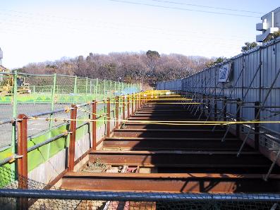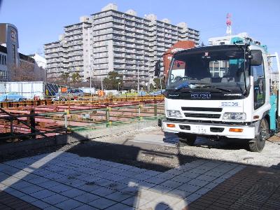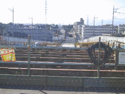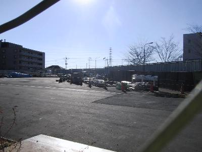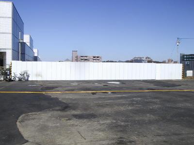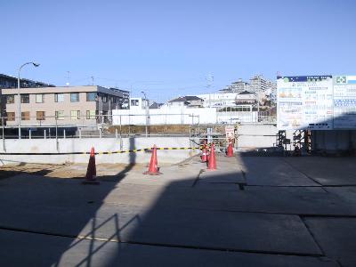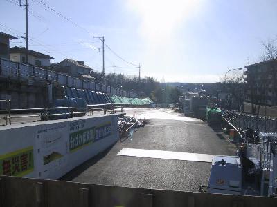 | トラックが入っています。 | ←の地点から通路を挟んで川和町側です。 この場所の工事は平成15年12月13日までですから、 今年中に工事が終わる予定になっています。 |