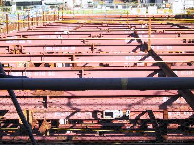 | それでは、いつものように柵の間からのぞいてみます。(笑)。なんと軌道敷が出来上がっていました。この場所は地上区間になります。 | |