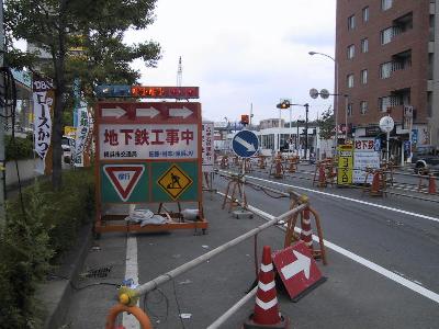 | 地下鉄工事中のため車線規制をしています。 東山田方から眺めています。 |