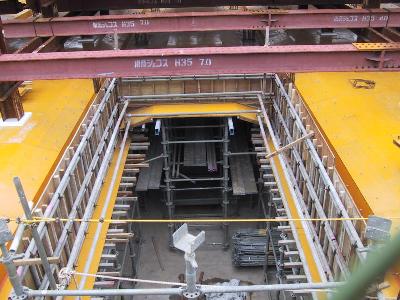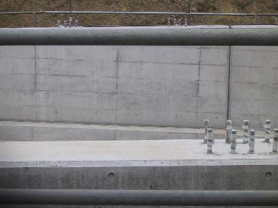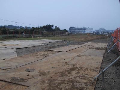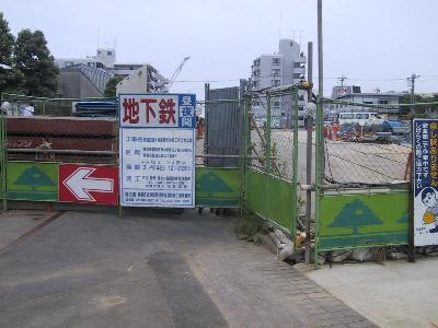 | 柵の中はただだだっ広くアスファルトが敷いてあるだけです。 | 端の方には深く、掘られているところがあります。ここに地下鉄が通ります。 |