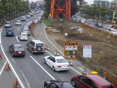 | 地下鉄工事のため道路が迂回しています。 | ←の道路を葛が谷方面に歩道橋で渡ったところです。 |