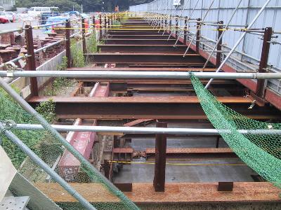 | 横浜上麻生線を横切る高山高架橋が姿を現しました。 | 高山高架橋の橋げた付近です。 |