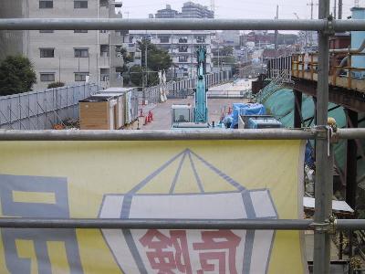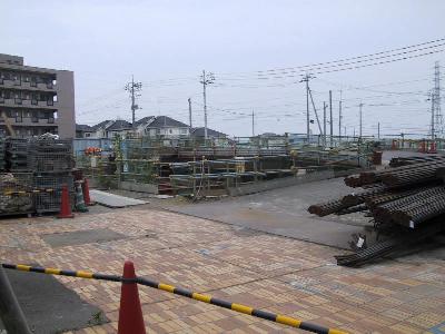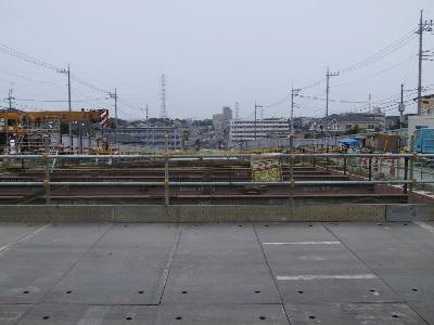 | 上にあがって、川和町側見たところです。 | さらに川和町側に進んだところです。コンクリートの路盤がすでにできています。 |