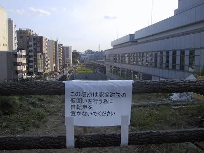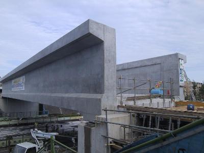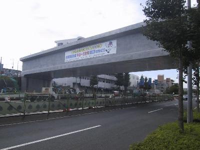 | 反対側から眺めます。 | 上に上がってみてみます。柵の高さがかなりあります。 残念ながら完成後、走行する地下鉄車両は屋根しか見えなさそうです。 |