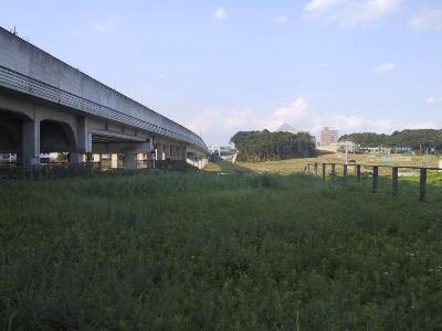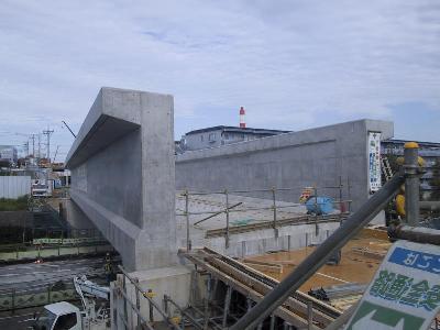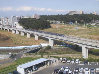 | 葛が谷−川和中央間の高山高架橋です。 | ご覧のようにほぼ完成しています。 このように地上施設が姿を現している数少ないポイントです。 |