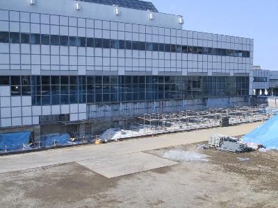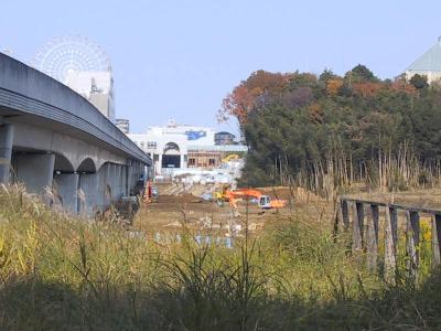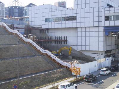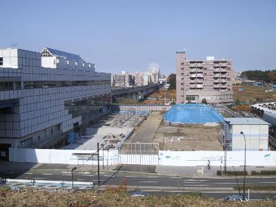 | バスターミナル側からみています。 すでに、土台部分の工事が始まっています。 |