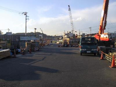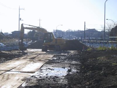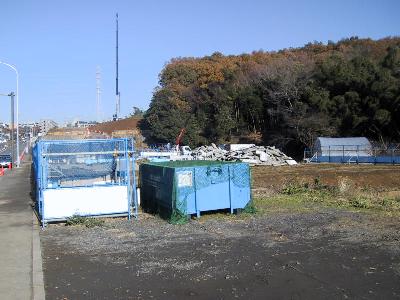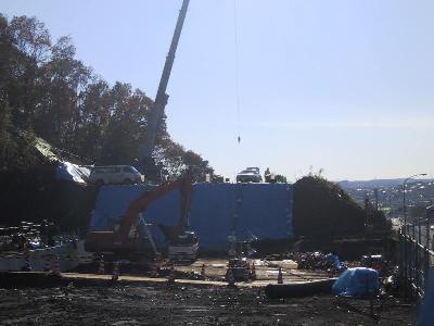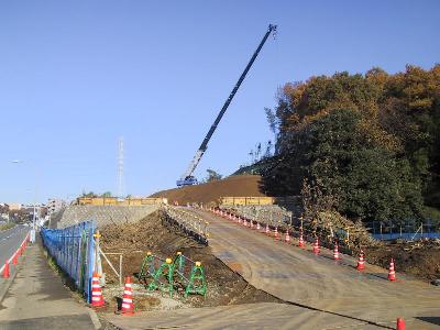 | 道路の反対側です。 | 中山方面を眺めます。大きな重機が入っています。 |