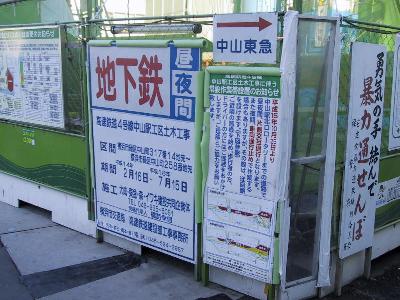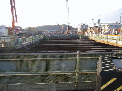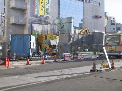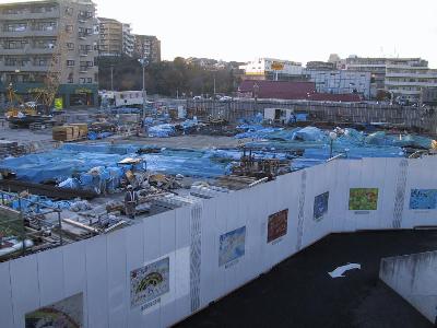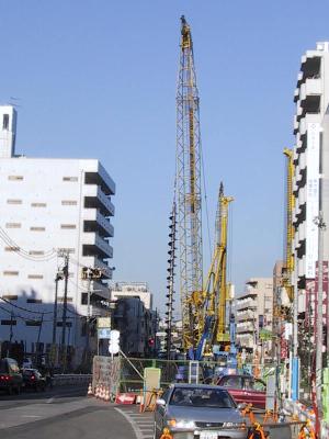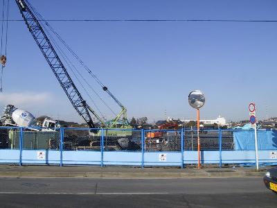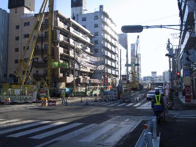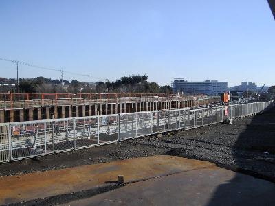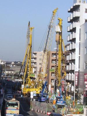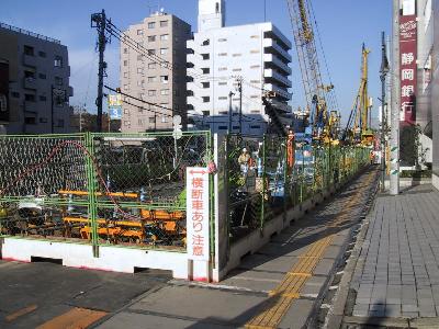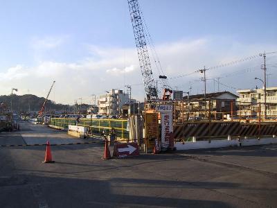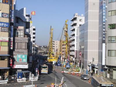 | 中山駅方面を眺めます。 | この付近はいたるところに重機が入っていて、かなり大がかりな工事に なっています。 |