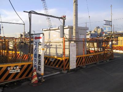 | 工事のため歩行者は迂回通路となっています。 | 最も、日吉よりから |