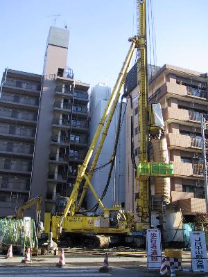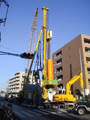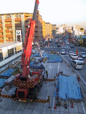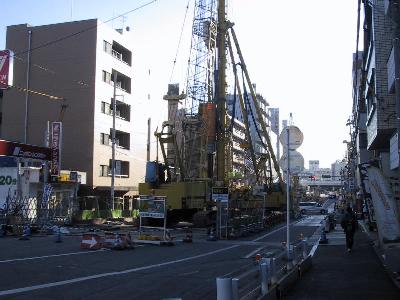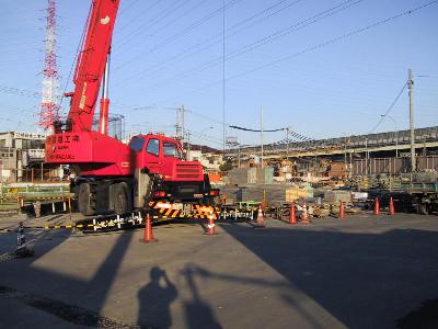 | さらに日吉方面に歩きます。 背の高い重機が入っています。 |