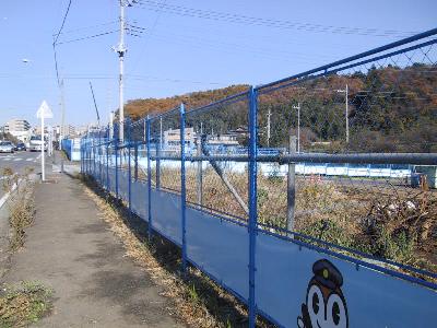 | センター北側から 道路の半分が工事用地になっています。 (まだ3時半なのですが、もう夕方の気配です。) |