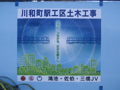 | 川和町駅工区のポスターも貼られていました。 | さらに中山方面に進み、日吉方面を振り返ります。 かなり背の高いクレーンが入っています。 |