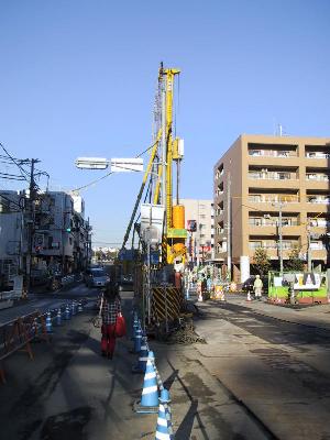 | さらに中山方面に進み、日吉方面を振り返ります。 | ショベルカーが入っています。 |