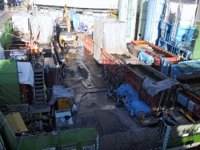 大きな重機も入っています。 (またしても、写真を撮っている自分の影が写っています。(笑)) |