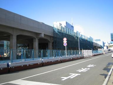 | センター北駅前の広場。工事前の元通りになりました。 この地下の中川中央工区は一昨年に完成しています。 奥にはまだ工事基地があります。ここから北山田駅に向けて シールドマシンが進んでいます。 |