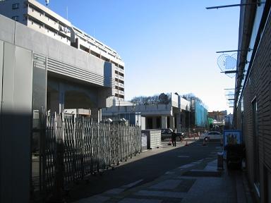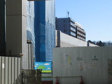 | 工事現場に近づいてみます。 | 柵から中を見ています。 |