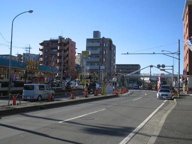 道路を挟んだ先からさらにセンター南方面を見ています。 センター北−センター南間は地上で3号線と完全に平行しています。 |
