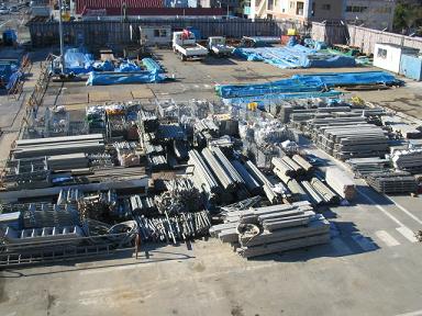 | 道路を挟んだ側です。 | 手前は昨年来変わらず資材置き場のようになっています。 |