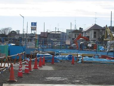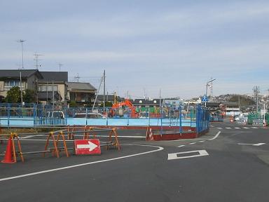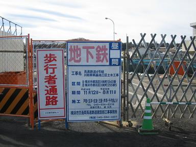 | 葛が谷駅 スーパーOKの前です。 | 柵の中です。葛が谷駅工区は平成15年度に完成をしていますが 駅の出入口はまだ出来ていないようです。 |