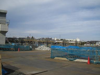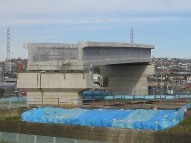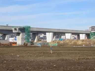 | センター北側を見ていきます。 | 角度を変えてみてみます。橋脚が立ち並んでいるのが分かります。 一部には橋梁部分になるものもすでにあります。 |