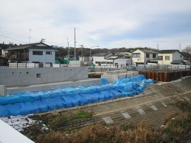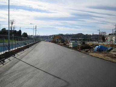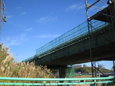 | 鶴見川を渡ると青砥町工区になります。 | 振り替えると先ほどの高架橋が見えています。 |