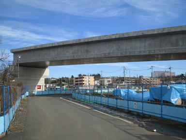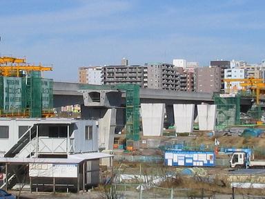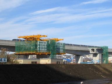 | センター北−センター南間は3号線と平行して高架橋の 建設が始まりました。写真はセンター南側から眺めています。 |
