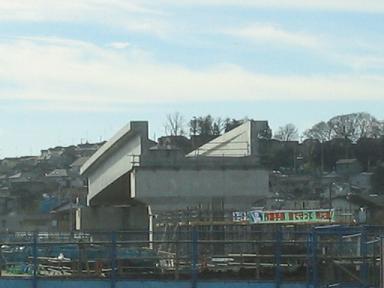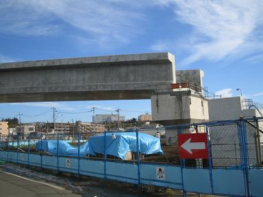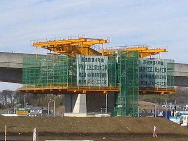 | まだ一部分ですが、こんな感じです。 | 手前にはこの高架橋に続く橋脚の建設中です。 |