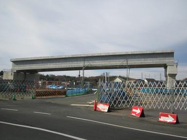 | 外側は延々と柵で覆われています。 | 川和車両基地の脇には本線の高架橋が建設されていました。 |