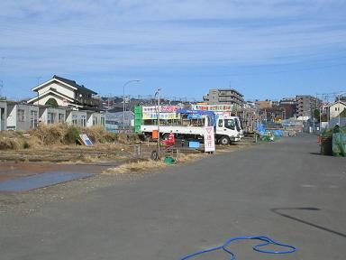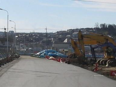 | 道路に沿って工事区間が進んでいます。 | 地下への作業口でしょうか。 |