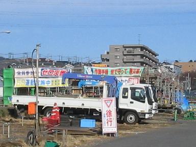 | 工事用のトラックが何台か入っています。 | 川和町席工区の看板です。 |