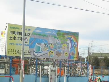 | 川和町駅工区でも本格的に工事が始まりました。 | この付近は高架で走ります。 |