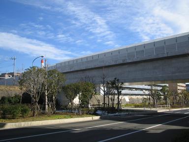 | 別角度からセンター北方面を眺めています。 | センター南駅の北側の道路を越える部分です。 |