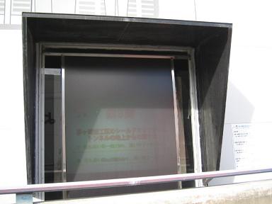 | 歩道橋の両脇にあります。 | 建設工事をPRするテレビモニタが設置されています。 太陽光が入ってしまって見にくい上、この歩道橋は人通りが あまりないので、無駄のように思えます。 |
