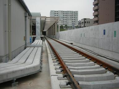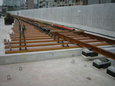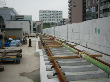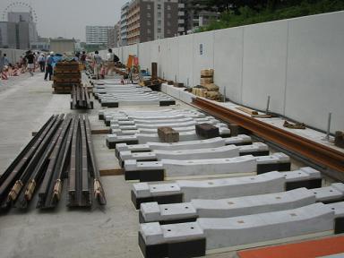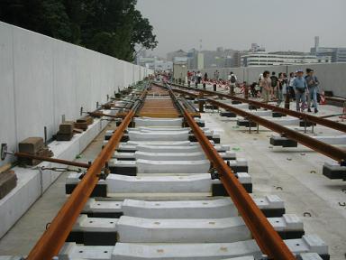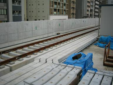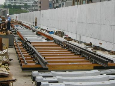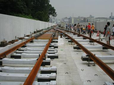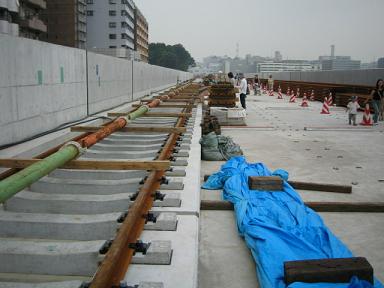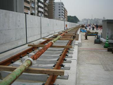 | センター北駅付近(日吉→中山方面)のレールの敷設は完全 に終っているようです。 |