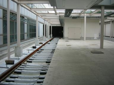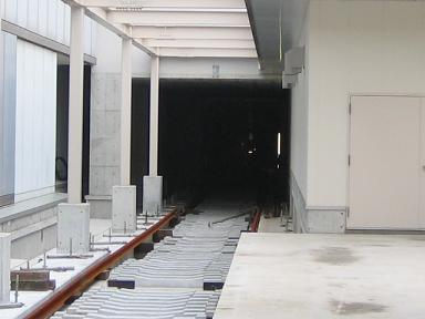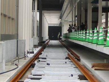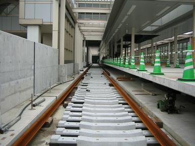 | センター南方面を見ています。この付近はすでに、 線路が本設置されています。 |