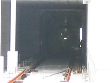 | センター南を出るとすぐにトンネルになります。 実はこれは逆方向で、開通後はトンネルの向こうから列車が入ってきます。 |