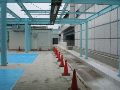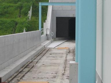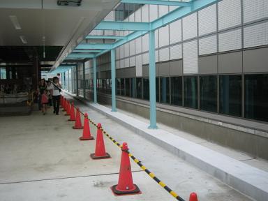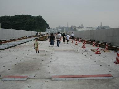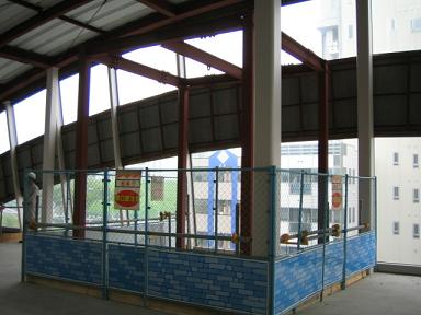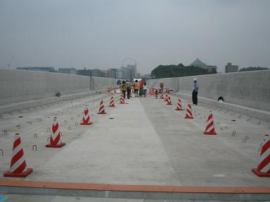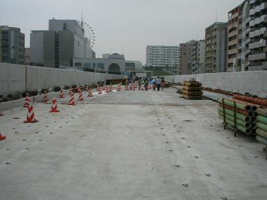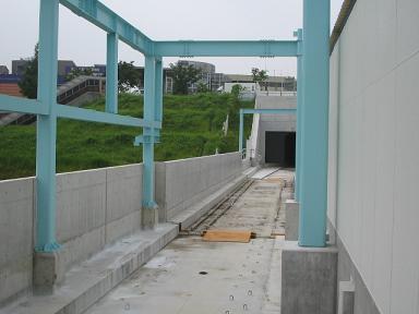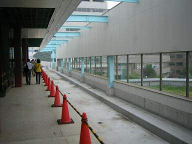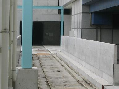 | 同じく西側です。こちらは現在共用中の3号線が平行しています。 | 展望台を降りて、さらにセンター北方面へ向かいます。 ご覧のように高架橋の塀が高いので、周りの景色は見えません。 |
