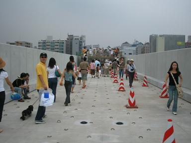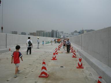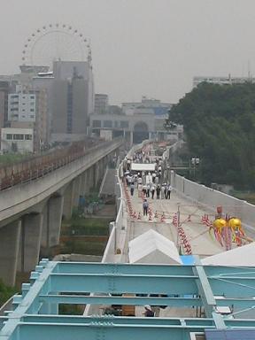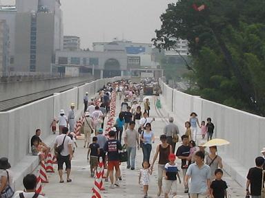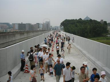 平成19年の開業を目指して建設中の4号線、センター南−センター北間(約900m)の高架橋が完成し、2005年7月30日に一般市民を対象に渡り初めウォークラリーが開催された。建設現場に堂々と入れる絶好の機会ということで、早速、参加して、その様子をリポートしました。