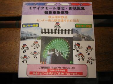 | センター南北駅間渡り初めウォークラリー記念乗車券 |