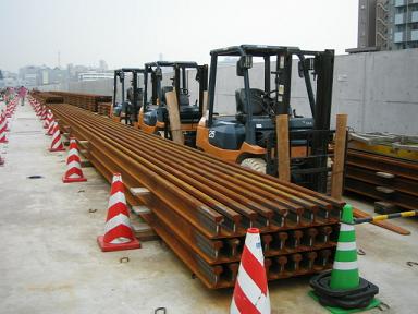 | 反対側には、これから設置されるレールが積まれています。 | 真ん中の管のようなものはなんでしょうか? |