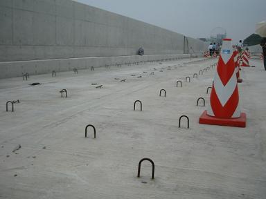 センター北側を見ています。 左側は現在供用中の3号線、右側が今回完成した 4号線の橋梁になります。 |
