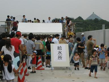 中間地点には給水所が設けられ、参加者全員に無料で 清涼飲料水が配布されました。 この日は、曇り空でしたが、とても蒸し暑く、こういう配慮は とてもありがたいです。 |