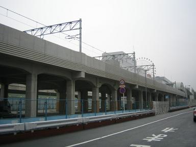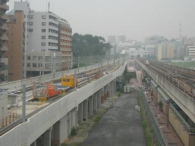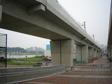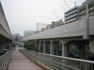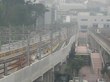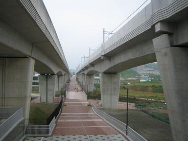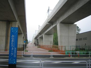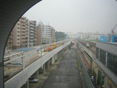 | 歩道が線路の高さ付近まで上がります。 | センター南駅方面を眺めています。 |
