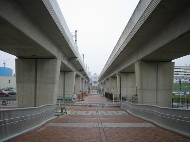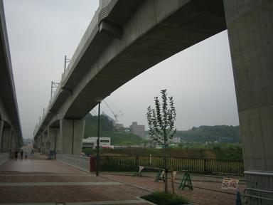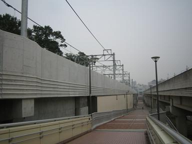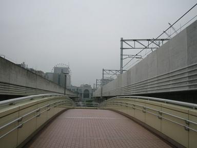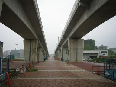 | 角度をかえてセンター南方面を眺めています。 | ここで道路を越えるため遊歩道が坂になっています。 |