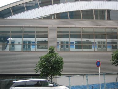 | センター北駅全景 駅外観はすでに完成しています。 | 駅構内には10000形が留置されていました。 |