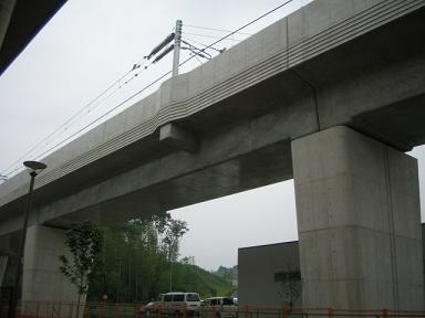 | 再び下りになるとまもなくセンター北駅になります。 | 遊歩道から外れて従来の道路からの撮影。 架線柱がよく見えています。 |