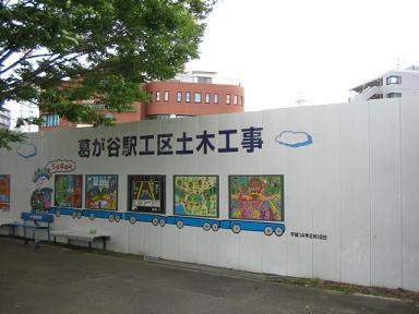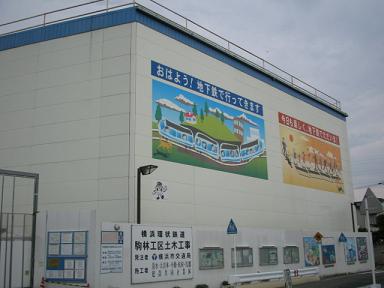 | シールドマシンを入れた基地と思われます。 | 地下鉄のイラストとスローガンが描かれています。 |