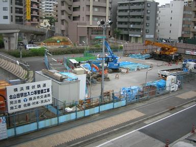 | 北山田側から高田町方面を見ています。 工事用地なのですが、すでに埋め戻されてなんとなく整然と しています。 |