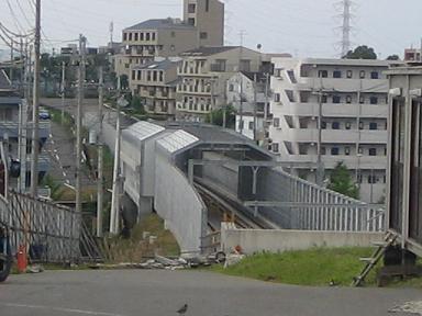 それではいつものように柵の中を覗きます。 ここがが駅の入口になると思われます。 (向きから考えるとマンション側からの入口だと思います。) |