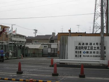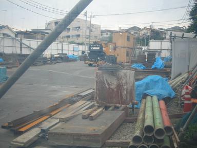 | 塀の中をみています。重機があります。 | 日吉本町方面を見ています。 |